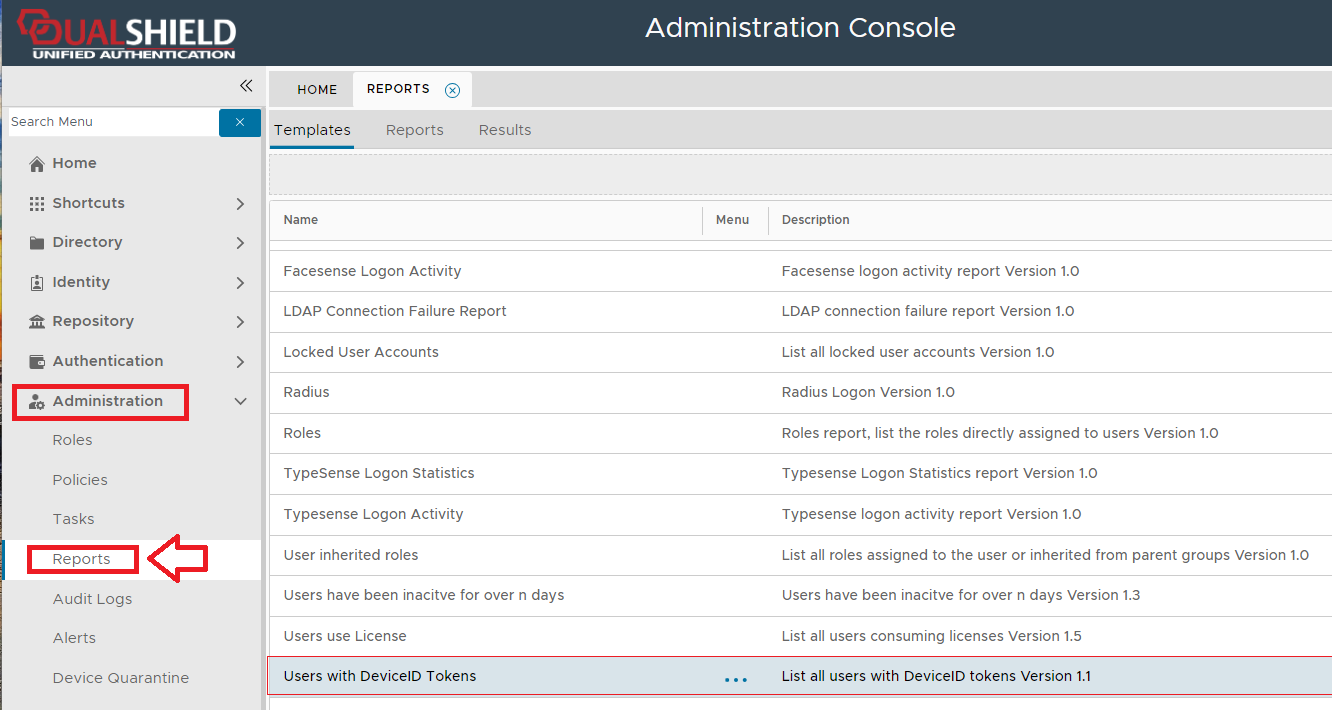 The report can be found by navigating to "Administration | Reports", then scrolling down to the report "Users with DeviceID Tokens";