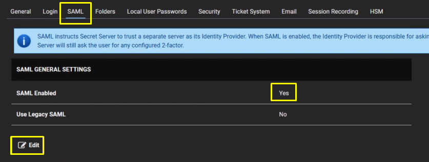 The “Administer Configuration SAML” role permission is required to use SAML to access Secret Server. To grant a user this permission from an administrator account: