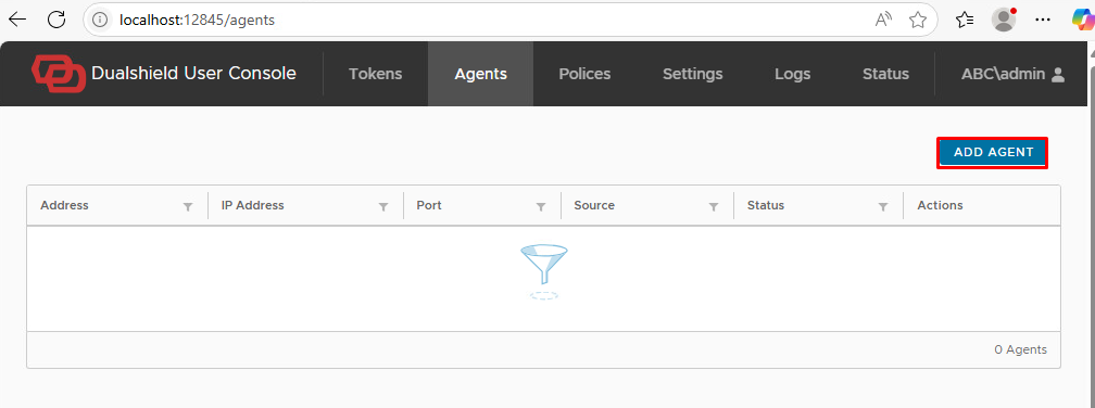 In the User Console, click the Agent tab, then click the Add Agent button
