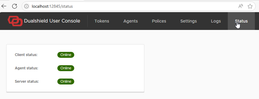 Click on the Status tab at the top to check that the agent status is displayed as online.
