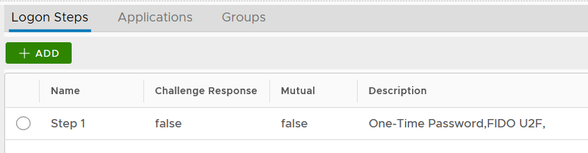 The example below is a logon step that includes 2 authentication options, one-time password and FIDO U2F, which means that the users will be allowed to authenticate themselves using either of the credentials.