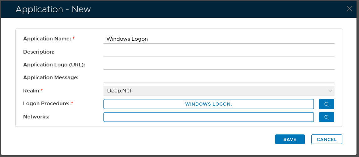 However, you must select a Logon Procedure that is of the type of Windows. In the example below, we are create an application with a name called "Windows Logon" and the logon procedure we select is a Windows logon procedure.