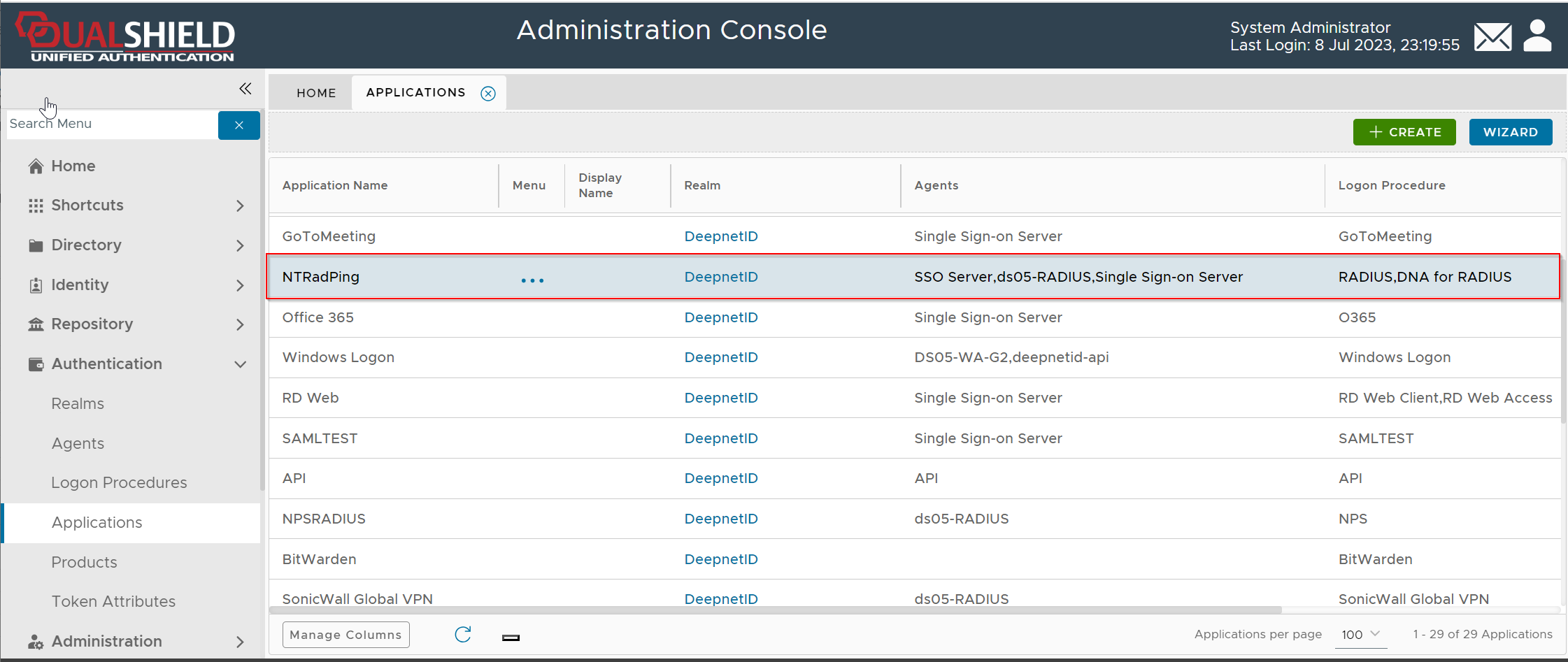 Note: If you have the old SSO server in your DualShield system, then you might also need to link the application to the SSO server.