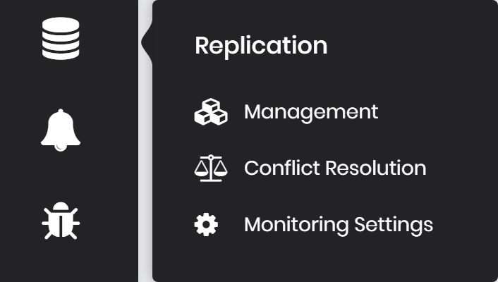 The Cluster Management section is used to create/modify a MySQL replication cluster. It can be accessed by selecting the replication menu option and clicking on Management.