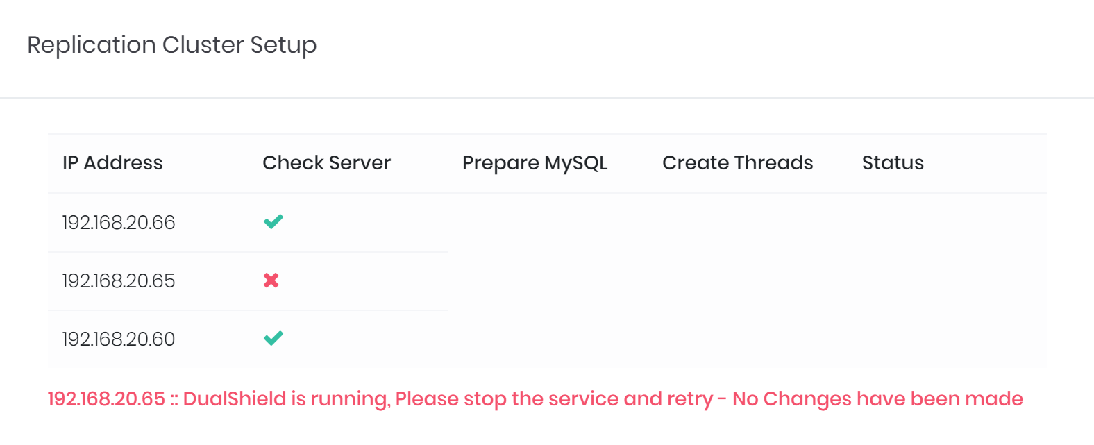 As a prerequisite you need to make sure that DualShield assistant has access to to the MySQL database on every node you wish to replicate.