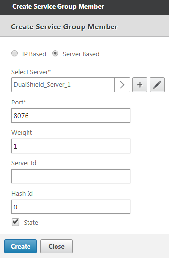 Select a real server, i.e. DualShield-Server_1, enter the port number that the service works on, i.e. 8076 for DSS (DualShield Self-Service Console)