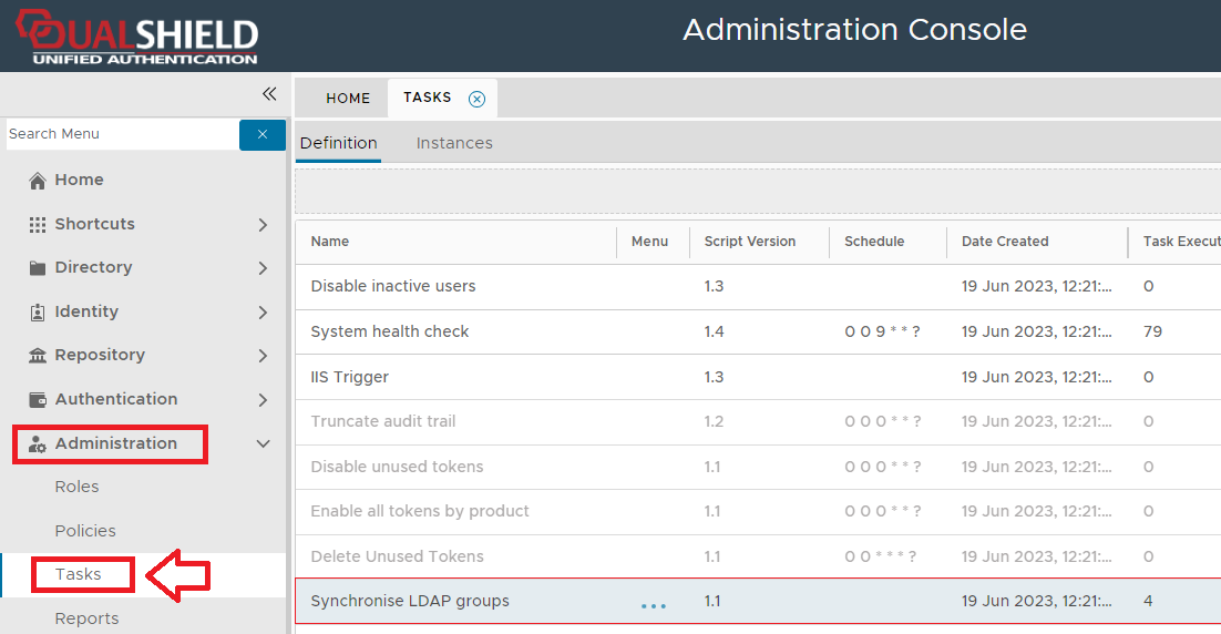 If you have moved user group(s) in your AD, run this task to synchronise with your DualShield server, and the purpose of this task is to force DualShield to synchronise with any LDAP group changes.