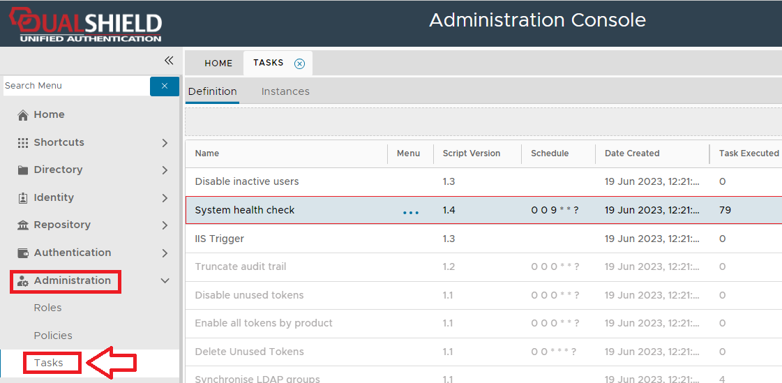 The purpose of the system health check is to monitor and report if either the Apple Push Notification System, or the DualShield Licenses are approaching expiry (the amount of days warning is provided in the task parameters).