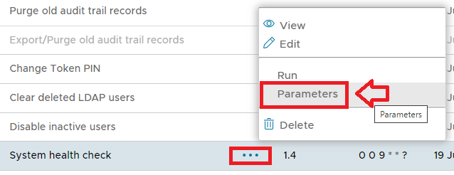 The task parameters are used by the task script to determine which tokens are to be deleted and are edited by left clicking on the context menu of the task and selecting "Parameters";