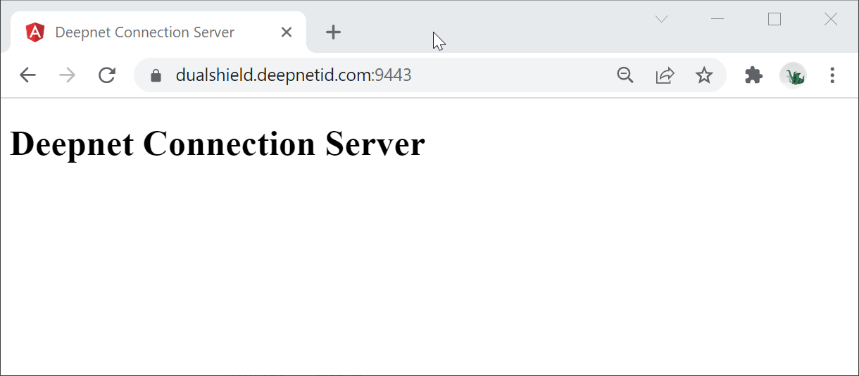 To test the DualShield Connection Server, from a PC where the Deepnet Authenticator is installed & running, enter its FQDN and its port number (9443) in the web browser, e.g. https://dualshield.deepnetid.com:9443