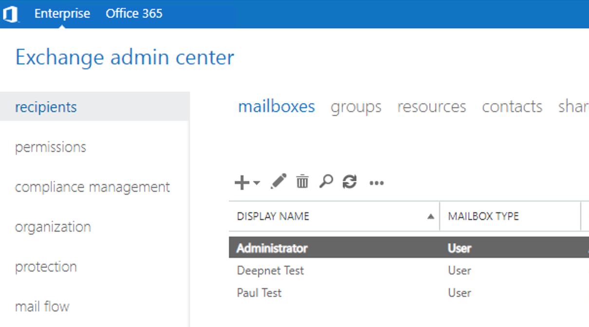 If successful you will be logged onto to the Exchange Admin Centre