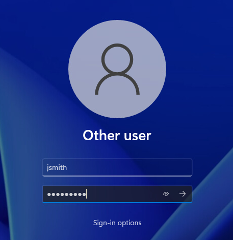 If the local administrator account is exempted from MFA in the policy settings, signing in with these credentials through the native Windows credentials UI should log you in directly without an MFA prompt.