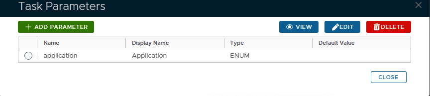 A new window titled "Task Parameters" will now open that lists the parameters that have been created for this task (see example below);