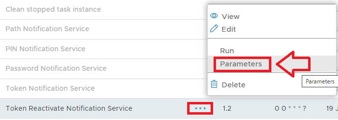 The task parameters are used by the task script to determine which tokens are to be deleted and are edited by left clicking on the context menu of the task and selecting "Parameters";