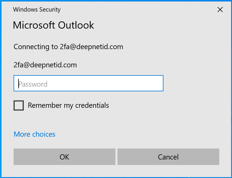 Outlook will prompt the user to enter the user's AD password, if "Remember my credential" is not enabled