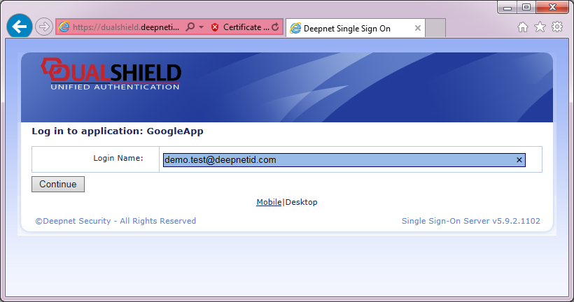 Launch a browser, and enter the URL for your Google Apps, e.g.