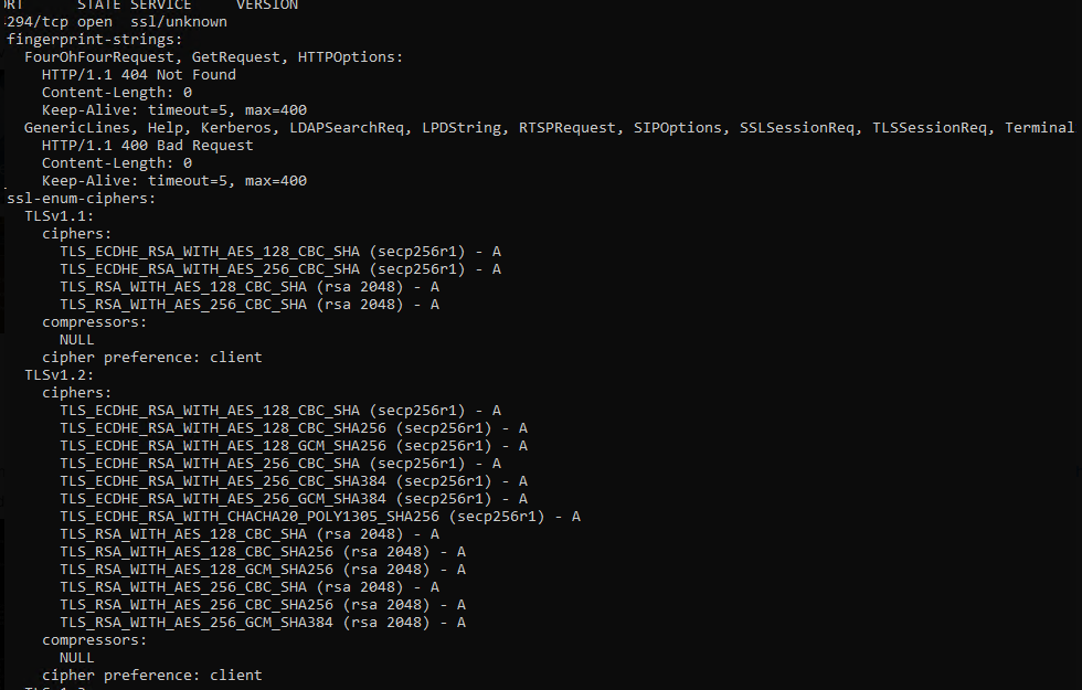 Use Command line: "nmap -sV --script ssl-enum-ciphers -p 14284 <host>"