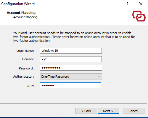 To set up an account mapping, first logon to the machine using a local account, then run the DualShield Configuration Wizard.