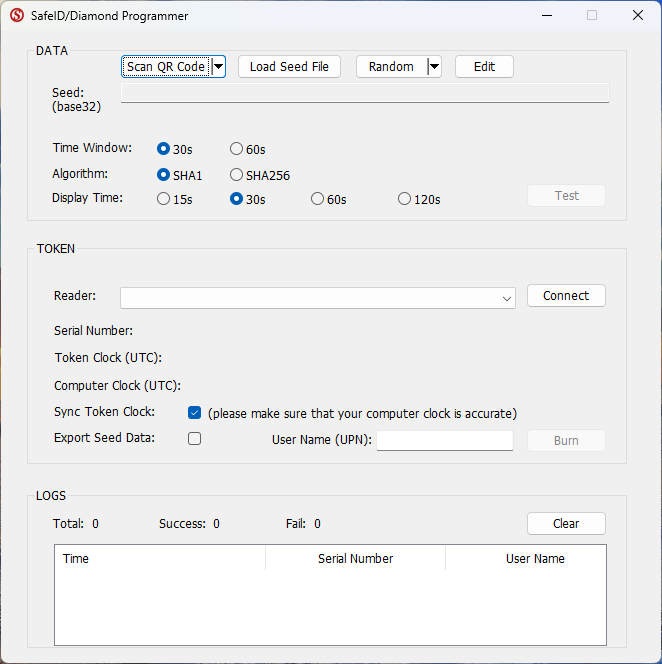 Whilst the SafeID programmable tokens are sent out pre-programmed with seed data, you may choose to replace the default seed with a random seed.