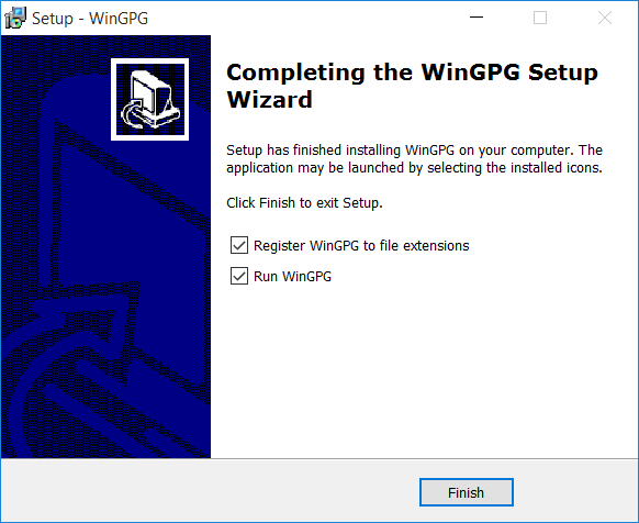 When You see the dialog box shown below, tick the box named "Register WinGPG to file extensions" and the box "Run WinGPG"