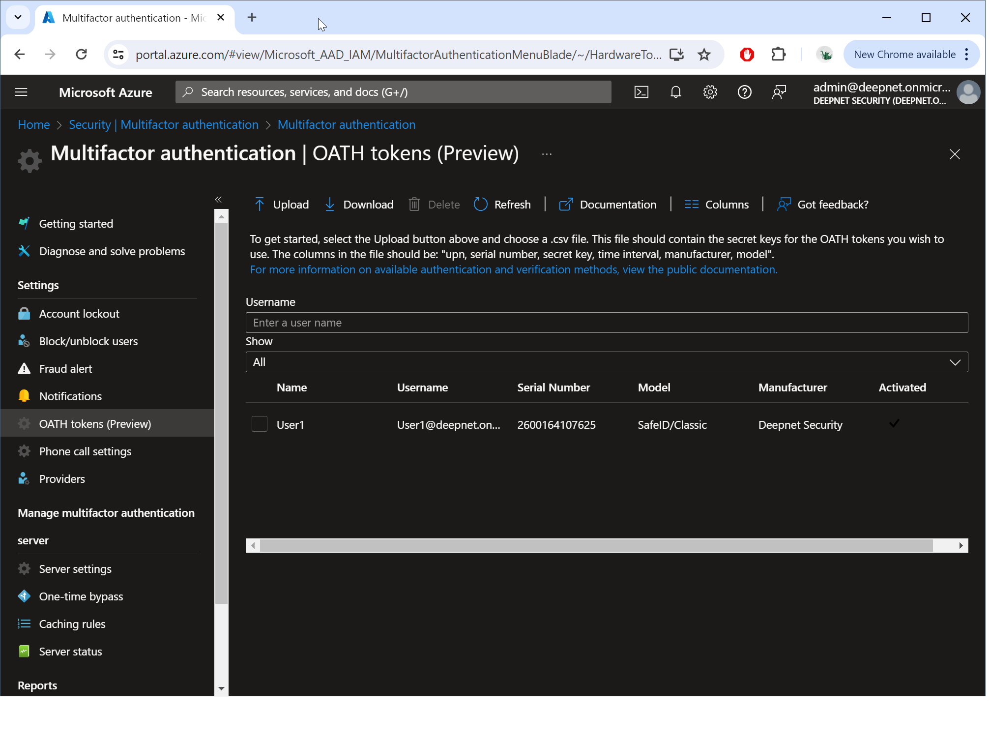 Set up OATH pre-programmed hardware tokens with Azure MFA