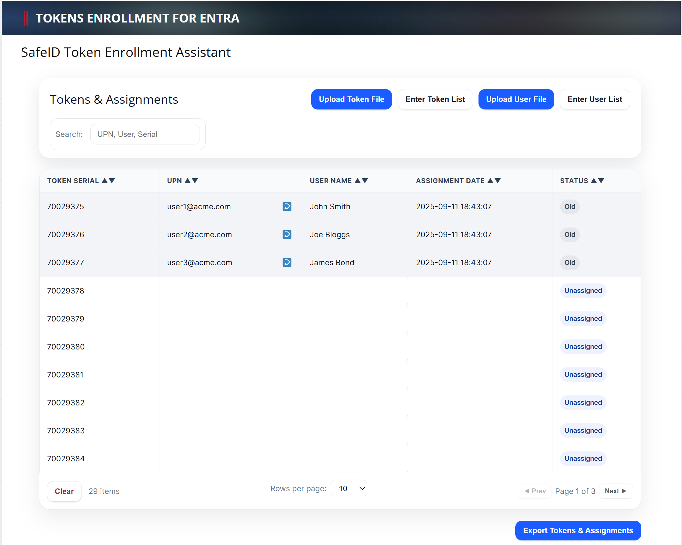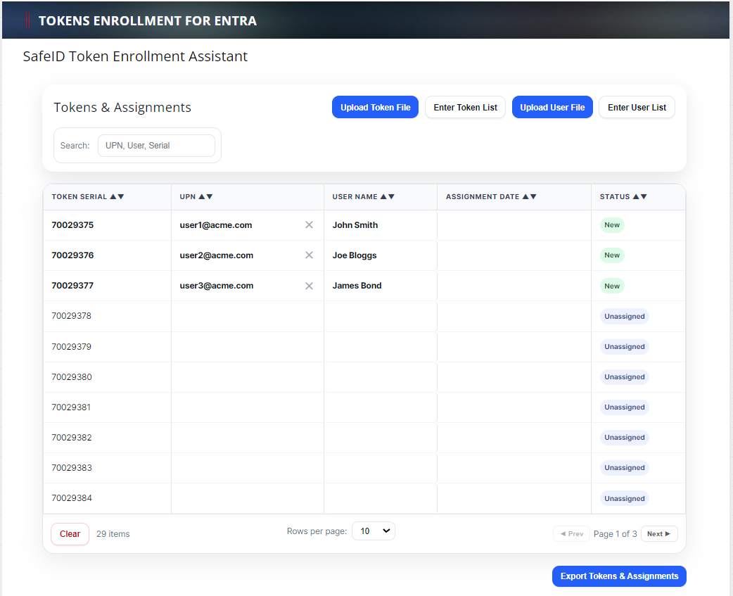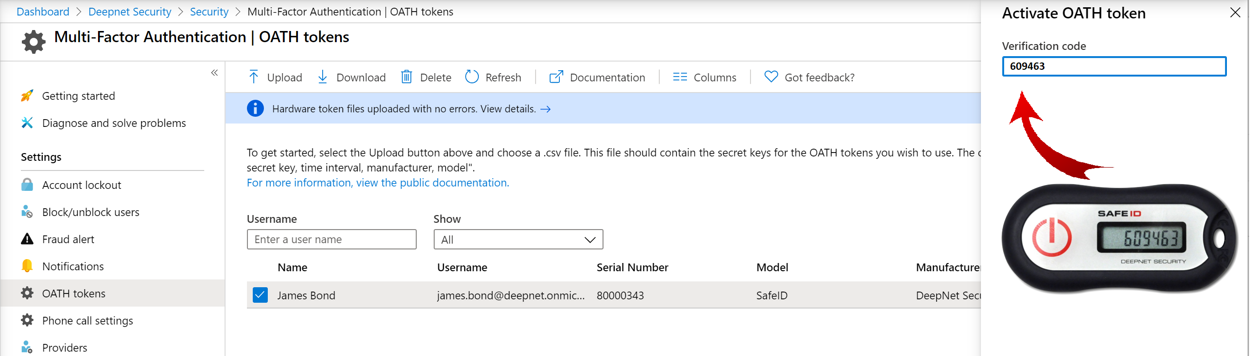 Once you have assigned tokens to users, you can upload the token assignment file onto Entra ID