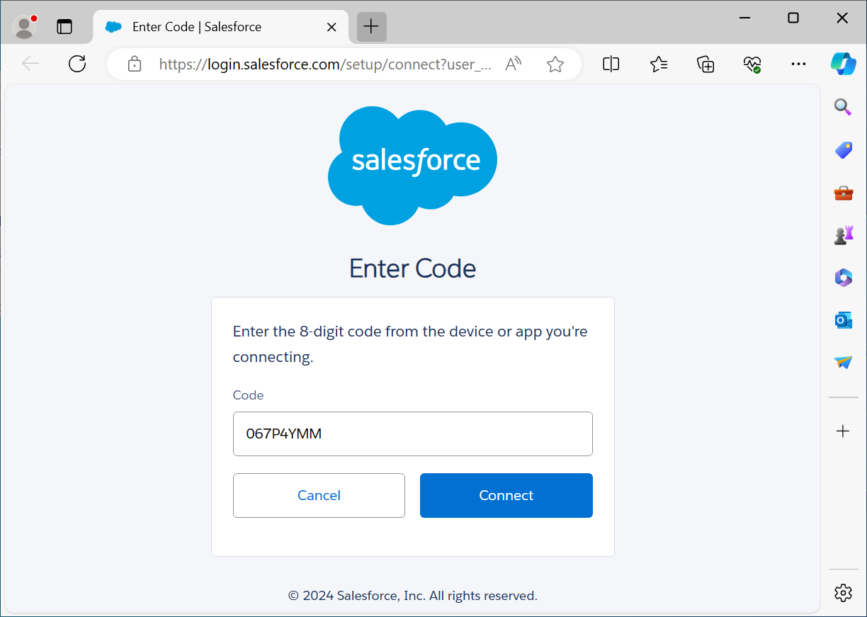 A web browser will open asking you to enter a code which has been prefilled