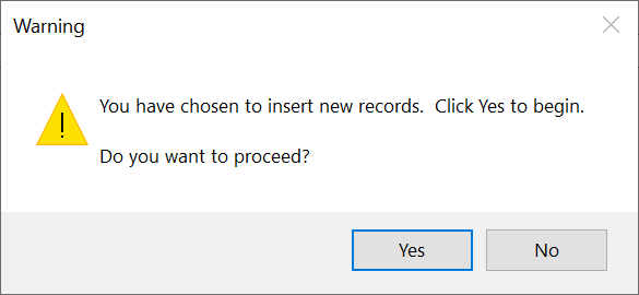 Click "Yes" to confirm you wish to proceed with inserting the data