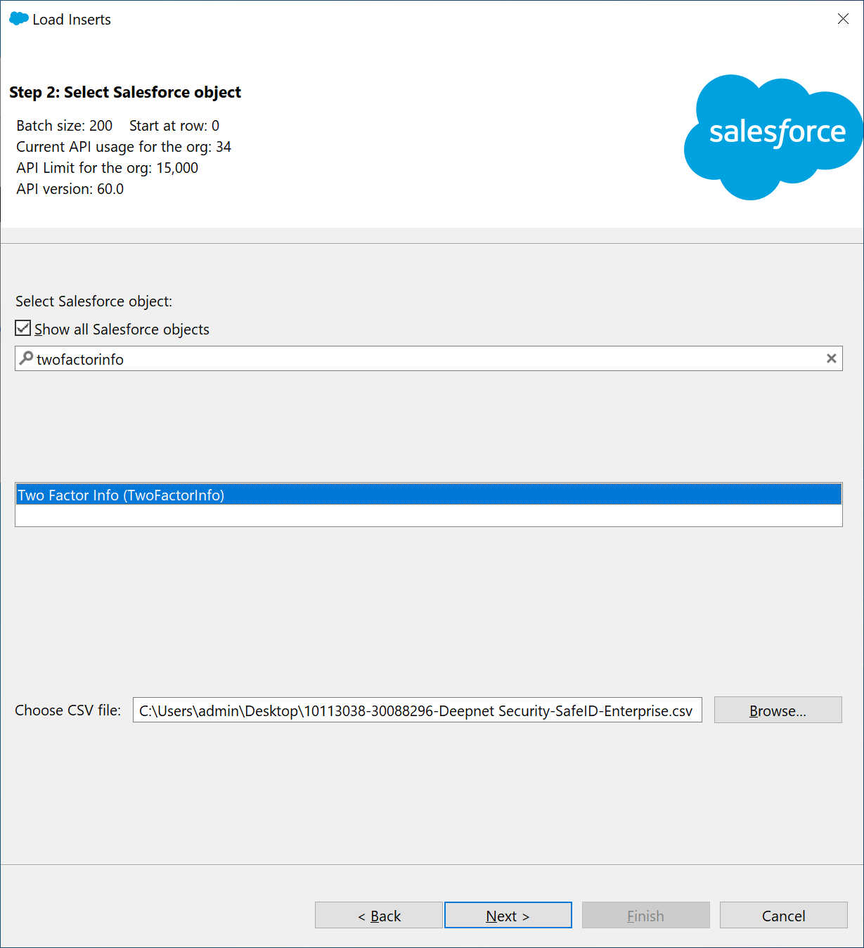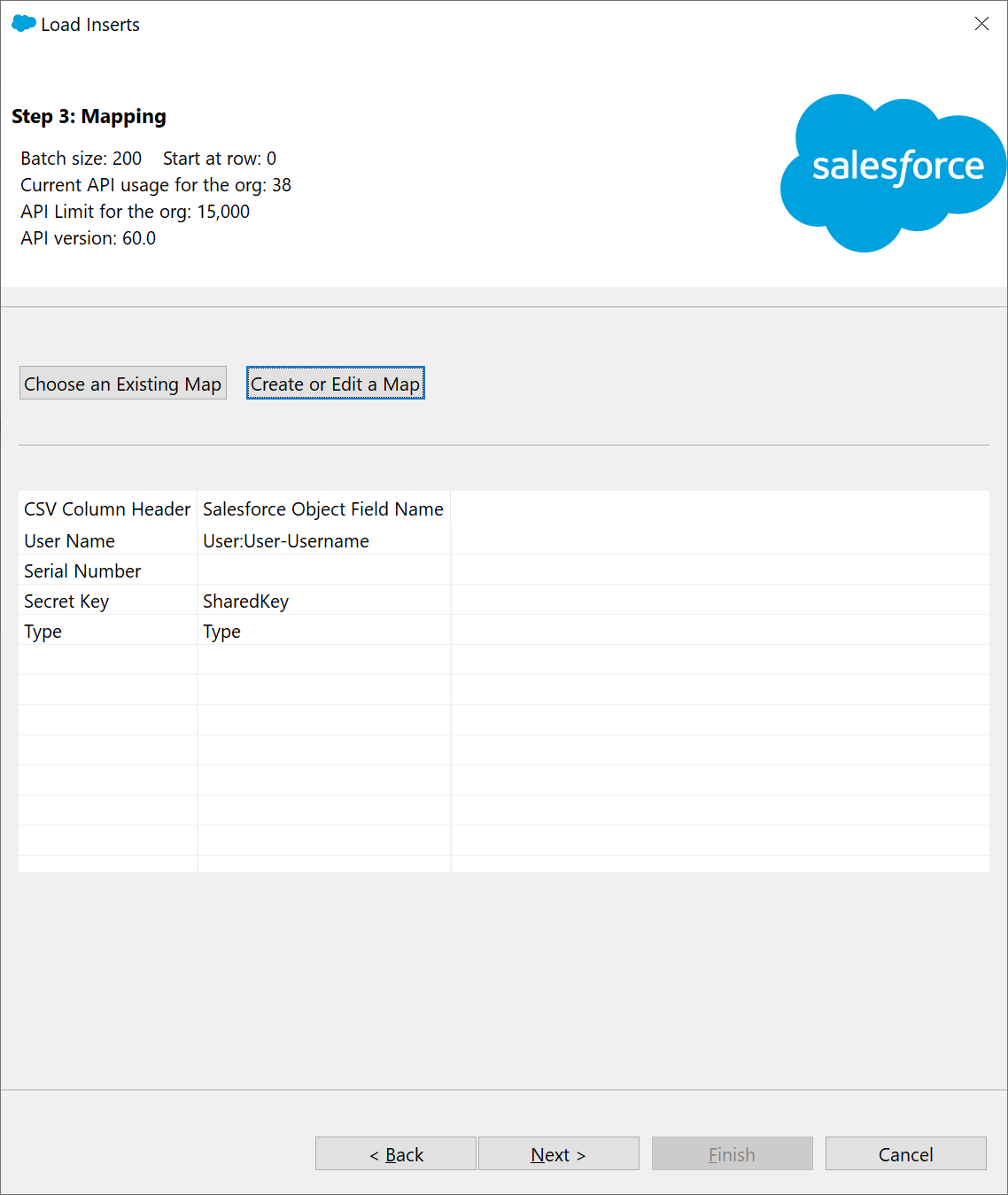 Now, switch back to the Salesforce Data Loader application