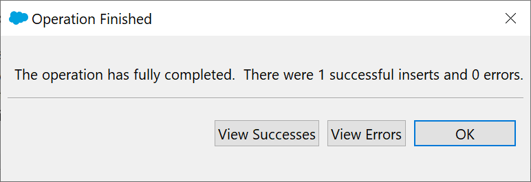 You should now be presented with a window confirming that the records have been inserted into Salesforce