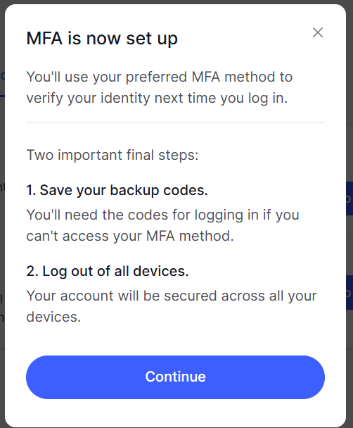 A new window titled "Account Settings" will now open, select the sub-section "Multi-factor authentication (MFA)", then click on the button ;