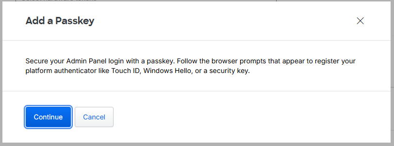 A window titled "Add a Passkey" will now open, click