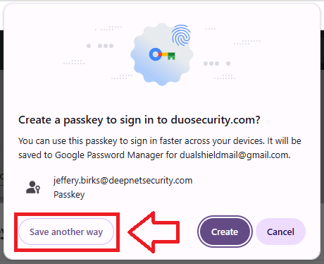 You will now be asked how the passkey will be created, click "Save another way";