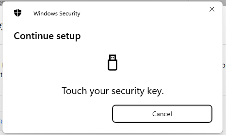 When asked where to save this passkey, select the option "Security Key", then click