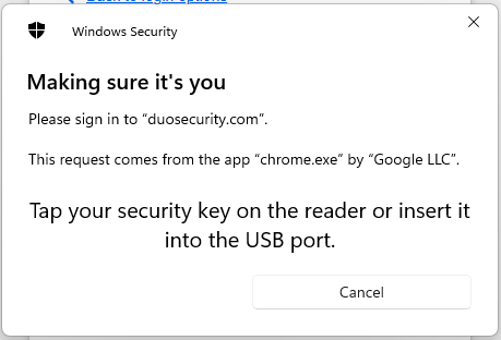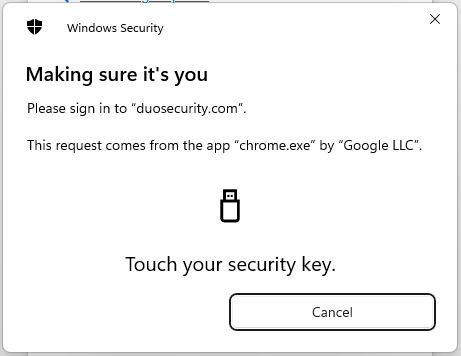 , and you Fido key will be ready to be used when you next log in to Duo.
