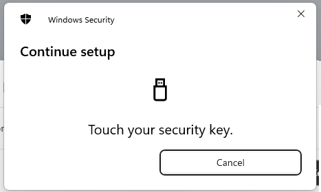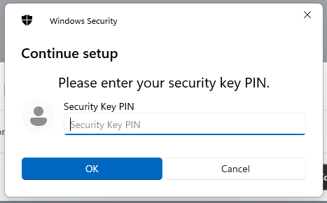At this point you will be asked to provide the PIN code that protects your Fido2 key;