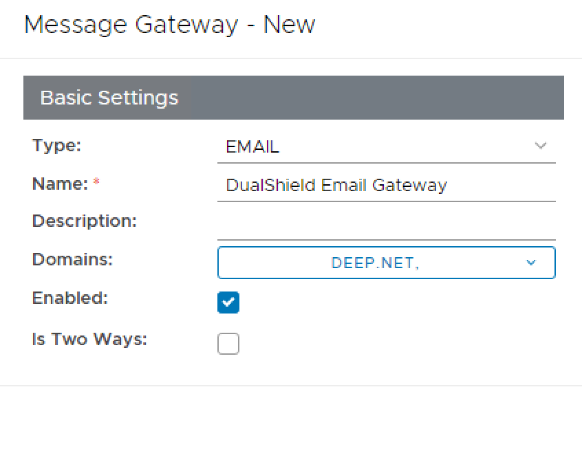 Enter a suitable name for your email gateway (e.g. “Dualshield Email Gateway”).