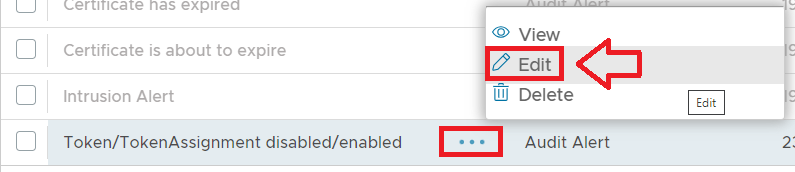 The alert can be edited by left clicking on the context menu of the alert and selecting "Edit";
