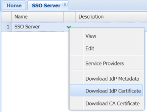- Click the context menu icon of the SSO server and select “Download IdP Certificate”