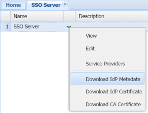 - Click the context menu icon of the SSO server and select "Download IdP Metadata"