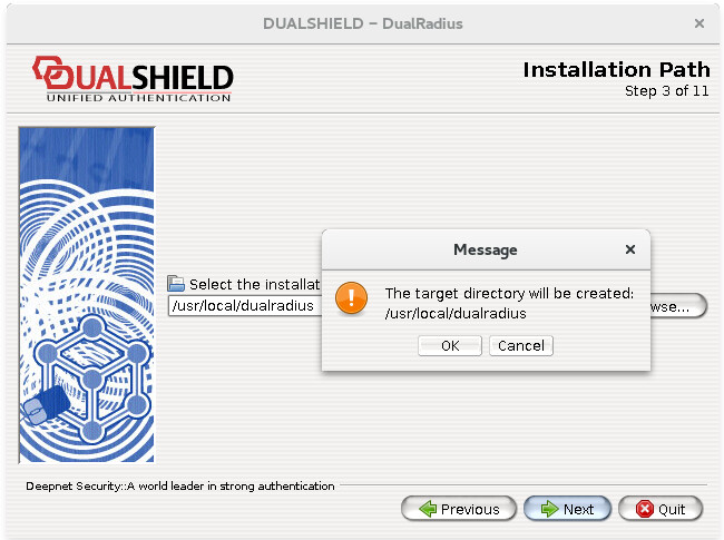 1. Grant the execution permission for DualShield RADIUS installer: chmod a+x setupdualradiusxxx.bin