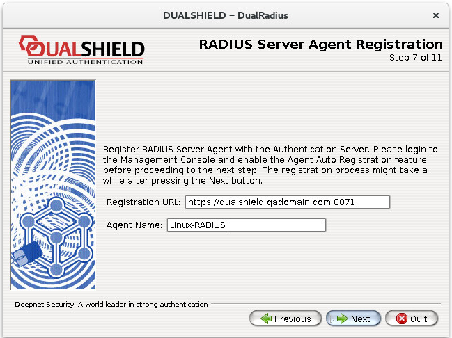 Step 7: Agent Registration - Enter the DualShield Server's FQDN accordingly