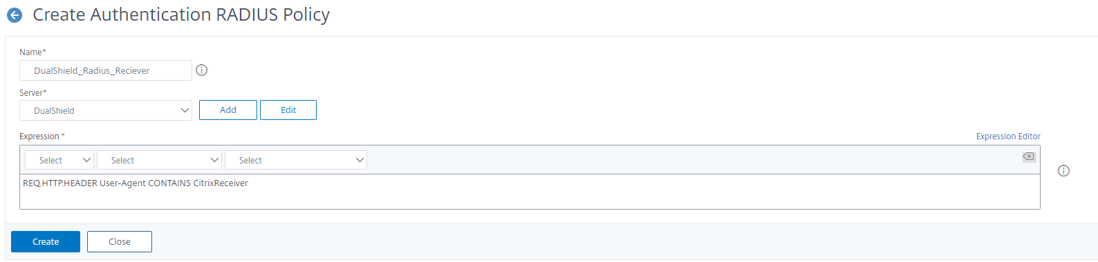 - Log into the Citrix NetScaler administration console, navigate to NetScaler Gateway | Policies | Authentication | Radius, select the “Policies” tab