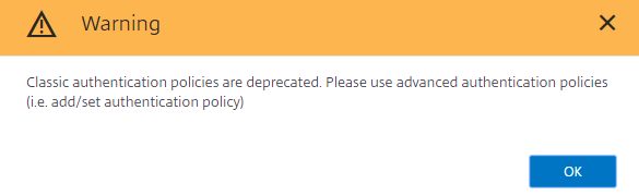 Ignore and click ok, for now. The expressions were working at the of time updating this documentation after testing Netscaler ADC VPX v13.0, however for future releases these may not work and we will update this wiki guide with the advanced expression.