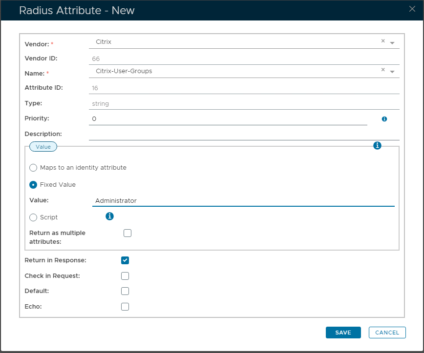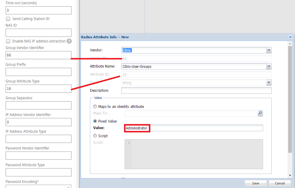 For the NetScaler Server to receive the RADIUS attribute, go to Configuration/NetScaler Gateway/Authentication/Radius/Server.