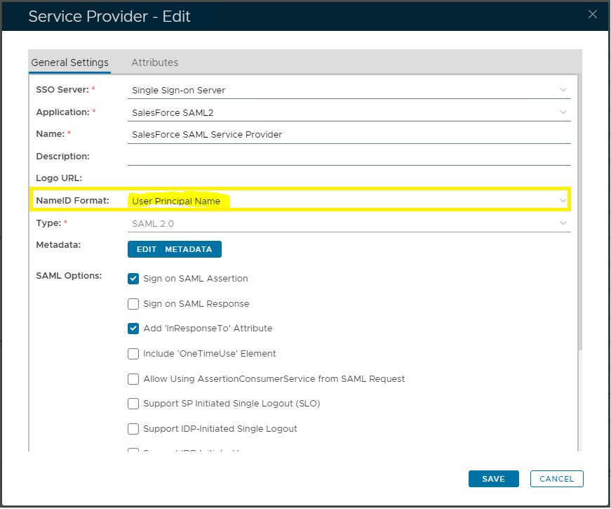 How to Fix: Change the NameID format in the Service Provider settings in DualShield to the appropriate format. For instance, if your SalesForce account name is in the format of UPN, then change the NameID format to UPN: