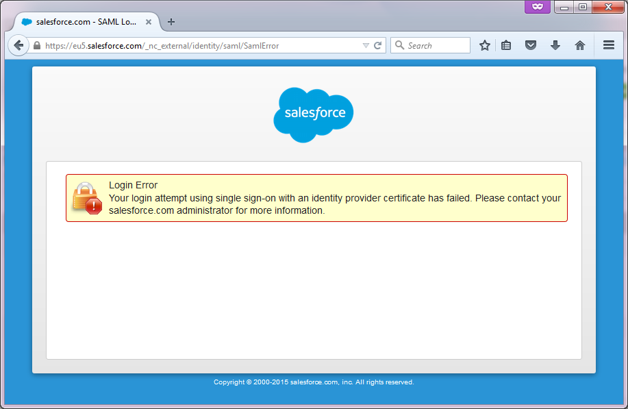 If you have been successfully authenticated by DualShield authentication server, however are now able to login to SalesForce and see the following error message: