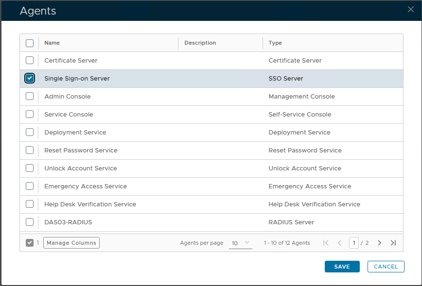 - Select the Agent named "Single Sign-on Server | SSO Server"