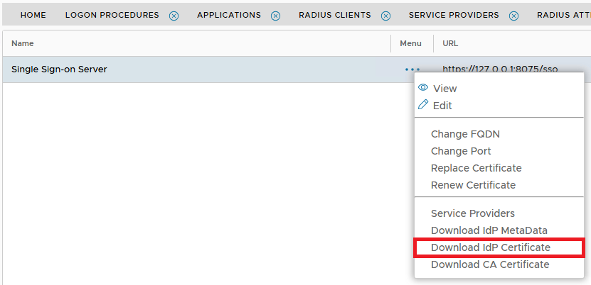 - Click “Download IdP Certificate”, to save the CER file to the local machine: