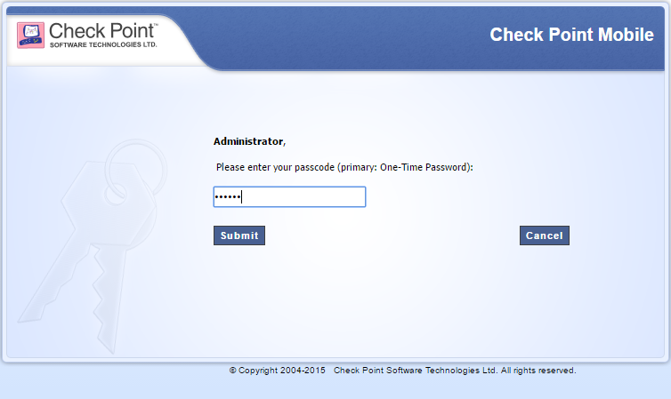 2. DualShield will verify your username and password. If the verification is successful, you will be challenged with one time password.